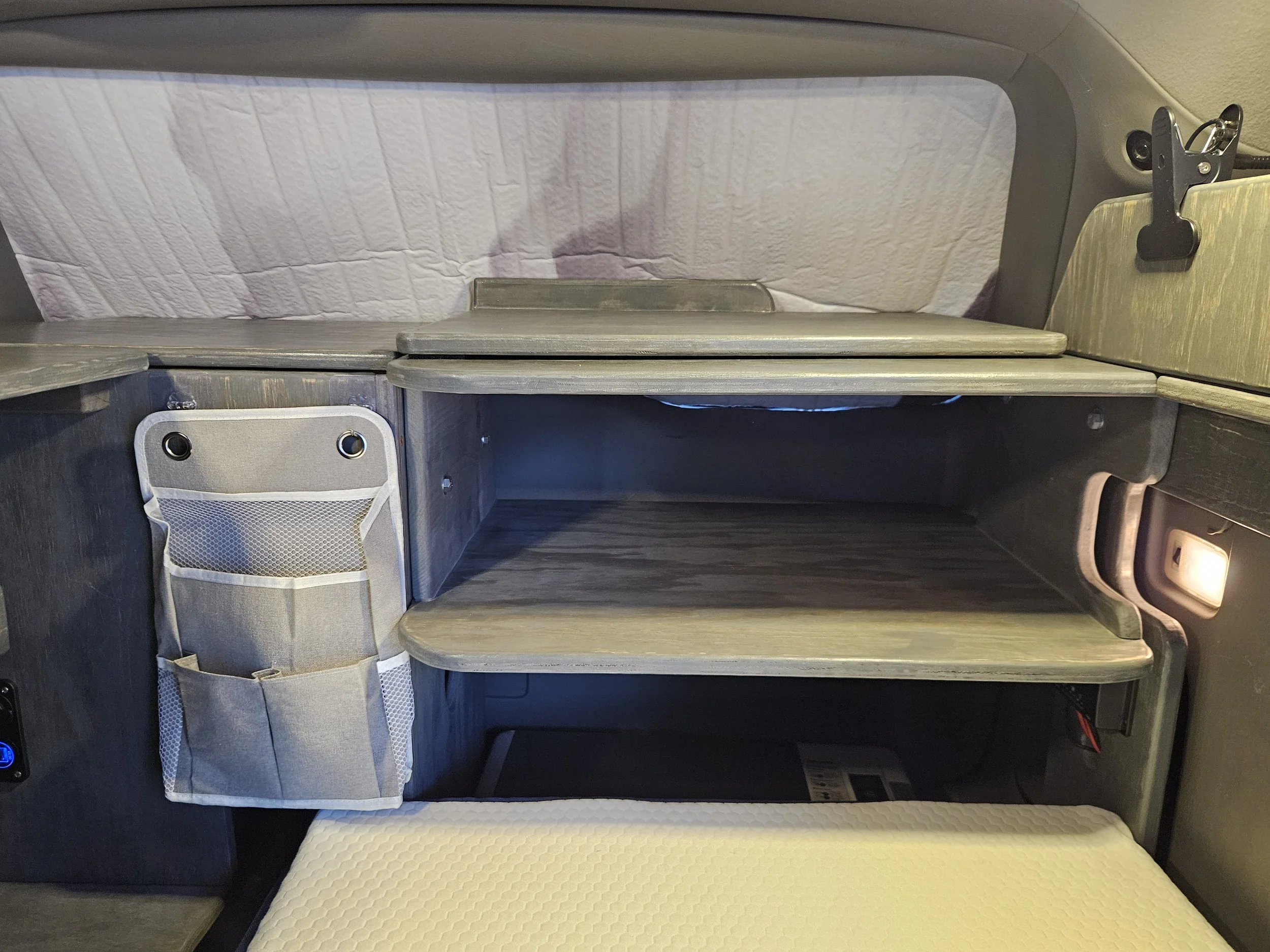 Passenger Side Wide Counter with Underneath Cubby Storage Compartments